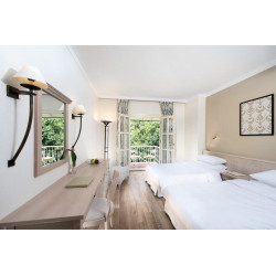 Doppelzimmer Standard (ca. 27 qm): Sind ausgestattet mit Bad oder Dusche/WC, Föhn, Sat-TV, Telefon, Klimaanlage (individuell regulierbar), WLAN (kostenfrei), Safe, Minibar (ggf. gegen Gebühr) sowie Wasserkocher mit Kaffee-/Teesortiment. Die Zimmer liegen in der ersten Etage.