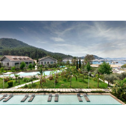 Das Hotel liegt in Gocek, ca. 750 m vom Sand-/Kiesstrand (Badeschuhe empfehlenswert) entfernt. Dieser ist mit dem Bus/Auto bzw. mit einem Shuttle (saisonabhängig) erreichbar. Die Innenstadt ist ca. 30 km entfernt. Die nächste Stadt Fethiye liegt ca. 30 km entfernt. Flughäfen: BJV ca. 173 km, ADB ca. 290 km, DLM ca. 18 km.