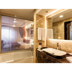 So wohnen Sie: In den Zimmern finden sich ein Wohnbereich und ein Badezimmer, für ein behagliches Raumklima sorgen eine Klimaanlage und eine individuell steuerbare Heizung. Zusätzlichen Komfort in den meisten Zimmern bietet eine Terrasse, die zum Entspannen einlädt. In den mit Teppichböden ausgestatteten Zimmern steht ein Doppelbett oder ein Kingsize-Bett bereit. Es sind getrennte Schlafzimmer vorhanden. Zustellbetten können angefordert werden. Außerdem sind ein Safe und eine Minibar verfügbar. Auch ein Minikühlschrank und eine Tee-/Kaffeemaschine sind vorhanden. Ein Bügelset ist für den zusätzlichen Komfort der Gäste verfügbar. Kleine Extras sorgen für einen tollen Aufenthalt, darunter ein Internetzugang, ein Telefon, ein TV-Gerät, ein Radio, ein DVD-Player, ein Steckdosenadapter, ein Wecker und WiFi. Zu den Vorzügen der Zimmer gehören bereitgestellte Hausschuhe. Die Badezimmer sind ausgestattet mit einer Dusche und einer Whirlwanne. Ein Haartrockner, ein Kosmetikspiegel und Bademäntel können für den täglichen Gebrauch benutzt werden. Für besonderen Komfort in den Badezimmern sorgen Kosmetikartikel. Buchbar sind rollstuhlgerechte Zimmer mit barrierefreiem Bad. Das Hotel bietet Nichtraucherzimmer.