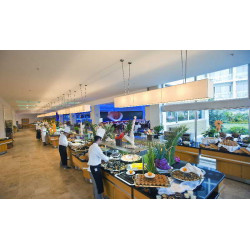All Inklusive: Frühstück, Mittag- und Abendessen in Buffetform, Spätaufsteher-Frühstück, tagsüber einheimische und internationale Snacks, nachmittags Kaffee/Tee und Gebäck sowie Mitternachts-Snack. Abendessen wahlweise in einem der A la Carte Restaurants (einmal pro Woche nach Verfügbarkeit und Vorreservierung). Diverse lokale alkoholische und nicht-alkoholische sowie einige Import-Getränke an den jeweils geöffneten Bars 24 Stunden, rund um die Uhr, inklusive. Ihr Mini-Kühlschrank wird täglich mit Softgetränken bestückt. 1 x pro Aufenthalt und ab einem Mindestaufenthalt von 4 Tagen ist das Speisen in einem der À-la-carte Restaurants kostenfrei (außer Fisch, mit Voranmeldung).