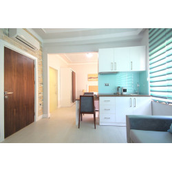 Der Sandstrand ist privat. In ca. 1 km Entfernung befinden sich mehrere Geschäfte. Die Innenstadt ist in wenigen Gehminuten erreichbar. Die nächste Stadt Antalya liegt ca. 100 m entfernt. Flughafen: Antalya-AYT ca. 25 km.