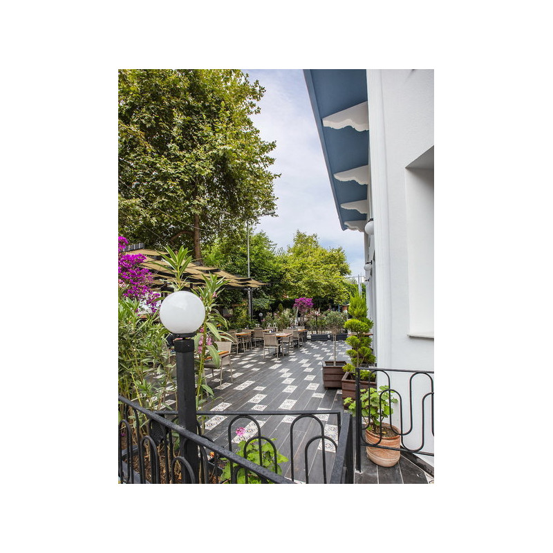 Das Hotel liegt in Kusadasi, ca. 1,6 km vom öffentlichen Sand-/Kiesstrand "Ladies Beach" (Badeschuhe empfehlenswert) entfernt. Dieser ist mit dem Bus/Auto erreichbar. In ca. 1 km Entfernung befinden sich Unterhaltungsmöglichkeiten. Die Innenstadt ist ca. 1 km entfernt. Die nächste Stadt Izmir liegt ca. 100 km entfernt. Flughafen: ADB ca. 67 km.