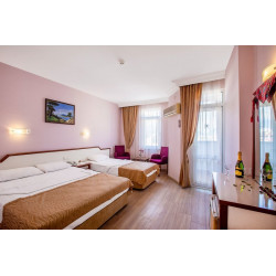 Klimaanlage, Balkon, Badezimmer, Teppichboden, Kinderbett, Doppelbett, Familienzimmer, Endreinigung, Haartrockner, Zentralheizung, Internetzugang (gegen Gebühr), Minibar, Telefon, Radio, Safe, Dusche, TV (Satellit), WiFi (gegen Gebühr),