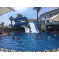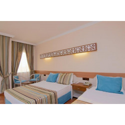 Das klimatisierte Hotel verfügt über 183 Zimmer verteilt auf 3 Etagen. Der Innenbereich umfasst eine Rezeption (24 h), Safe (gegen Gebühr), Frisör, einen Lift, Shop, Restaurant und eine Bar sowie WiFi (ggf. gegen Gebühr, in öffentlichen Bereichen) und Internet-Zugang (gegen Gebühr, in öffentlichen Bereichen). Zur Verfügung steht weiterhin eine TV Lounge. Eine Snackbar bietet zusätzlich kleine Speisen. Die Poollandschaft umfasst einen Pool sowie eine Poolbar (saisonabhängig), Wasserrutsche und eine Sonnenterrasse (saisonabhängig). Darüber hinaus können die Gäste in der hoteleigenen Gartenanlage entspannen. Hotelgästen stehen am Pool Sonnenschirme und Sonnenliegen zur Verfügung.