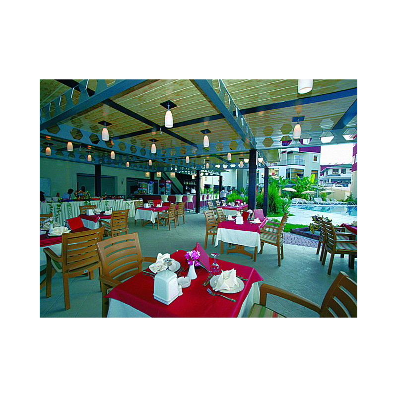 Das Hotel liegt ca. 800 Meter vom Strand entfernt und nach Side sind es ca. 2 km. Der Flughafen Antalya ist ca. 60 km entfernt.