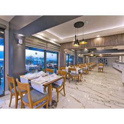 Ausstattung: Im Außenbereich Swimmingpool mit Sonnenterrasse, Liegen, Schirme, Auflagen, je nach Wetterlage, am Pool inklusive. Empfangshalle mit Rezeption, WLAN im ges. Hotel inklusive, Bars, Buffet- und À-la-carte-Restaurant. Landeskategorie: 4 Sterne, 56 Zimmer, Lifte.