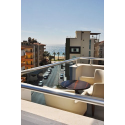Zustellbett, Klimaanlage, Balkon, Badezimmer, Badewanne, Kinderbett, Kosmetikartikel (ohne Gebühr), Doppelbett, Kühlschrank, Haartrockner, Zentralheizung, Internetzugang, Minibar, Telefon, Safe, Meerblick, Dusche, Hausschuhe, Terrasse, TV, WiFi (ohne Gebühr), Schreibtisch,