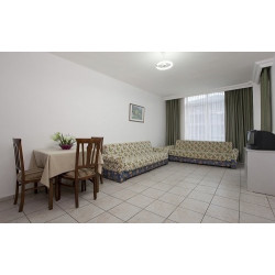Die Anlage besitzt insgesamt 39 Appartements und bietet Ihnen eine Lobby mit Rezeption, WIFI, Restaurant, Bar und Parkmöglichkeiten. Im Außenbereich befindet sich ein Swimmingpool mit Sonnenterrasse und eine Poolbar. Liegen, Auflagen, Schirme und Badetücher stehen Ihnen am Pool und am Strand gegen Gebühr zur Verfügung.