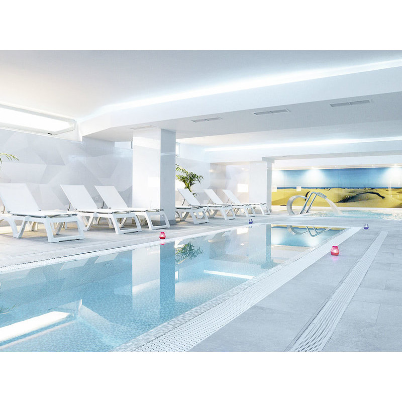 Ausstattung: Komforthotel nur für Erwachsene. Swimmingpool, Sonnenterrassen, Liegen, Schirme und Pool-/Snackbar. Rezeption mit Sitzgruppen, WLAN, Buffetrestaurant, große Dachterrasse mit 2 kleinen Pools und Chill-out-Bar mit Panoramablick. Landeskat.: 4 Sterne, 192 Zimmer, 4 Etagen, 2 Lifte.