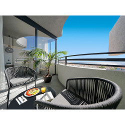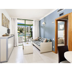 Suite (SU, ca. 43 qm, adults only), Klimaanlage, Wohnraum, Schlafsofa, sep. Schlafzimmer, TV, WLAN, Mietsafe. Dusche/WC. Balkon, wahlw. mit Poolblick (SUP). Max. 3E, zur Alleinnutzung buchbar
