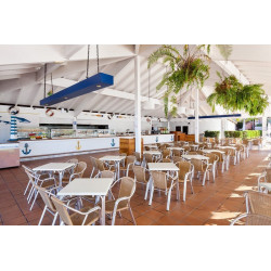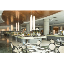 All inklusive: Frühstück, Mittagessen und Abendessen in Buffetform, tagsüber Snacks. Lokale alkoholische und alkoholfreie Getränke laut All inklusive-Karte sind von 10:00 bis 22:00 Uhr an den jeweils geöffneten Bars inklusive. Importierte Getränke sowie alle weiteren Extras wie z.B. frisch gepresste Fruchtsäfte gegen Gebühr. 1 x pro Aufenthalt und ab einem Mindestaufenthalt von 5 Tagen und 2 x pro Aufenthalt und ab einem Mindestaufenthalt von 7 Tagen ist das Speisen in dem À-la-carte Restaurant "La Palmera" kostenfrei (Reservierung erforderlich).