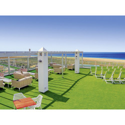 Ausstattung: Ferienhotel mit Swimmingpool, Sonnenterrasse, Liegen, Schirmen (Badetücher geg. Kaution) und Poolbar. Rezeption, WLAN, Restaurant, Dachterrasse mit Cocktailbar. Landeskat.: 4 Sterne, 150 Zi., 8 Etg., 2 Lifte.