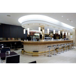 Es stehen verschiedene gastronomische Einrichtungen zur Auswahl, wie ein Speiseraum, ein Café und eine Bar. Verschiedene Spezialitäten erwarten die Gäste in einem Restaurant mit mit Klimaanlage und separatem Raucherbereich. Die Unterbringung bietet als buchbare Verpflegungsleistungen Übernachtung inkl. Frühstück, Halbpension und Vollpension. Ein kontinentales Buffetfrühstück garantiert einen guten Start in den Tag. Zum Mittagessen und Abendessen stehen verschiedene Gerichte à la carte zur Auswahl.