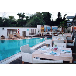 BUSINESS SUITEN: (ub) Ca. 40 qm. Lage im 3. Stock. Modern eingerichtet, Grundausstattung wie die Zimmer, LCD-TV. Geräumiges Bad oder Hydromassagedusche/WC. Balkon mit Meerblick.