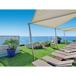 Ausstattung: Designhotel mit spektakulärem Panoramablick auf das Meer. Swimmingpool, Sonnenterrasse, Liegen, Schirme. Sky&Sea-Rooftop (Adults only) auf 1.200 qm inklusive Schwimmbad, Bar, Restaurant, Aktivitäten, Chill-out-Bereich, balinesischen Betten. Empfangsbereich mit Rezeption, WLAN, Bar, Restaurant. Landeskat.: 4 Sterne, 540 Zimmer, 9 Etagen, 6 Lifte.