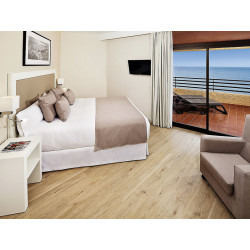 Deluxe-Zimmer (DZD, ca. 28 qm), gehobene Ausstattung, Klimaanlage, Minibar (geg. Geb.), TV, Telefon, WLAN, Safe. Bad, WC, Föhn. Balkon, seitl. Meerblick. Max. 3E