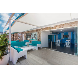 - 51-60 qm, Doppel, 2x Doppelzimmer Ocean, mit Verbindungstür, Meerseite, Meerblick (zum Teil seitlich), behindertengerecht (Zimmer auf Anfrage buchbar), Twinbett, 2 Bäder, Badewanne, 2 WCs, Bademantel (kostenpflichtig), Haartrockner, Fliesen, Klimaanlage, Safe, 2 TVs (Sat-TV), Telefon, Wasserkocher, Kaffee/Tee, Kühlschrank, Balkon oder Terrasse (möbliert)