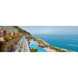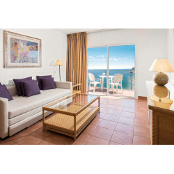 - 51-60 qm, Suite, Meerblick (zum Teil seitlich), kombinierter Wohn-/Schlafraum, separates Schlafzimmer, Twinbett, Sofabett, 2 Bäder, Badewanne, WC, Bademantel (kostenpflichtig), Haartrockner, Fliesen, Klimaanlage, zentral gesteuert, Safe, TV (Sat-TV), Telefon, Wasserkocher, Kaffee/Tee, Kühlschrank
