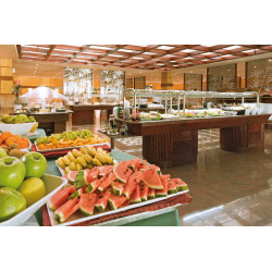 - Buffetrestaurant: italienische Küche, spanische Küche, mexikanische Küche, landestypische Küche, orientalische Küche, regionale Küche, spezielle Kost (Allergikerkost, vegane Küche, vegetarische Küche), Live-Cooking-Station, klimatisiert, Panoramablick
