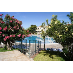 Das freundliche Appartementhaus besteht aus 3 zweistöckigen Gebäuden mit insgesamt 110 Einheiten und verfügt über Rezeption mit Schließfächern, Internet (gegen Gebühr) und ein Restaurant sowie im Garten ein großer Swimmingpool mit Kinderbereich, Sonnenterrase mit Liegen am Pool und Pool-/Snackbar zur Verfügung.