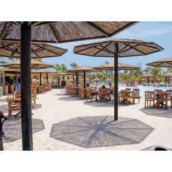 Ausstattung: Weitläufige Ferienanlage mit einer Gesamtfläche von 60.000 qm. Umgeben von Schatten spendenden Palmen 3 Swimmingpools, 1 Pool mit Rutschen, Sonnenterrasse mit Liegen und Pool-/ Snackbar. Rezeption, Internet (geg. Geb.), WLAN (geg. Geb., außer in der Lobby von 8-12 Uhr)), Bar, mit TV-Ecke Restaurant. Landeskat.: 3 Schlüssel, 350 Wohneinheiten.