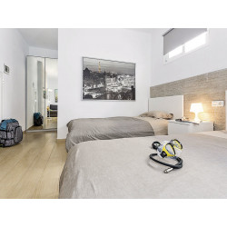 Wohnen: Doppelzimmer Typ A (DJ, ca. 21 qm), TV (40 Zoll), WLAN (geg. Geb.), Mietsafe, Minibar (geg. Geb.). DU/WC, Föhn. BK/TE mit Hängematte. Max. 2E, zur Alleinnutzung buchbar. (DEJ)