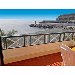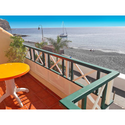 Lage: Im sonnigen Südosten, in Playa Santiago mit Blick auf den kleinen Hafen, durch die Uferstraße vom dunklen Lavastrand (Kiesel/Sand) getrennt.