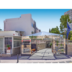 Ausstattung: Komfortable Ferienanlage mit Haupt- und Nebengebäude. Großzügiger Swimmingpool, Sonnenterrasse mit teilweise überdachter Sitzterrasse, Liegen und Schirme. Empfangshalle, Rezeption, WLAN (inkl.), Aufenthaltsbereich mit gemütlichen Sitzgruppen, Salon, Bar mit Außenterrasse, Restaurant. Landeskategorie: 4 Sterne, 108 Einheiten, 3-5 Etagen, 3 Lifte.