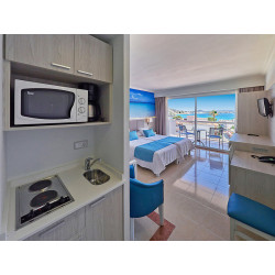 Superior-Studios (SAS, ca. 46 qm), komb. Wohn-/Schlafraum mit Schlafcouch, Klimaanl. (w./k.), Kitchenette, Kaffeemaschine, Tel., WLAN (inkl.), TV, Mietsafe. DU/WC, Föhn. Balkon mit zwei Liegen und Sonnenschirm. Max. 3E
