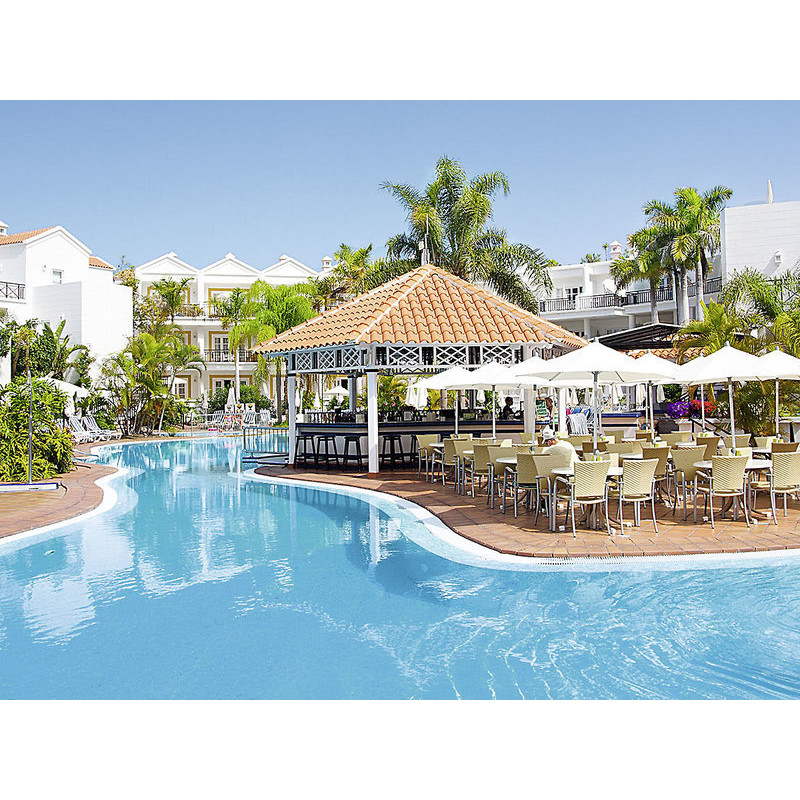 Ausstattung: Attraktive Ferienanlage, bestehend aus mehreren Wohngebäuden, mit tropischem Garten, Swimmingpool, Sonnenterrassen, Liegen, Schirmen (Badetücher gegen Gebühr), Jacuzzi und Pool-/Snackbar. Dachterrasse mit Liegen und Schirmen. Empfangsbereich mir Rezeption, WLAN, Aufenthaltsraum, Restaurant. Landeskategorie: 3 Sterne, 184 Zimmer, 3 Etagen.