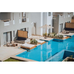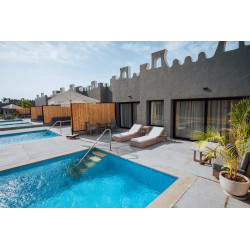 Executive Suite (ES2): Gleiche Ausstattungselemente wie die Doppelzimmer (ca. 100 m²), bestehen jedoch aus 2 Schlafzimmern, 2 Bädern und einem Wohn-Schlafraum. Die Zimmer haben eine Terrasse mit Jacuzzi oder Zugang zu einem privaten Pool.