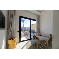 Klimaanlage, Balkon, Badezimmer, getrennte Schlafzimmer (getrennt), Haartrockner, Kingsize-Bett, Lounge, Minibar, Telefon, Safe, Meerblick (seitlich), Dusche, Terrasse, TV (Satellit), Whirlpool,