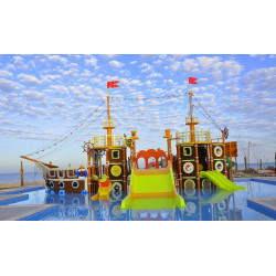 Zum Außenbereich des Hotels mit Wasserpark und Wasserrutsche gehören 6 beheizbare Frischwasser-Pools mit einem separaten Kinderbecken. Hier stehen Sonnenschirme und Sonnenliegen kostenlos zur Verfügung. Eine Bar am Pool bietet den Gästen erfrischende Getränke (geöffnet von 10:00 - 17:00).