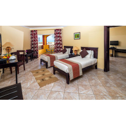 Ihre UnterkunftAm Roten Meer heißt das Royal Tulip Beach Resort vtours-Gäste mit einem privaten Strandbereich willkommen. Neben mehreren Restaurants und Bars bietet das All-Inclusive-Resort einen Wellness-Bereich, der entspannte Momente verspricht. Inmitten der gepflegten Gartenanlage befinden sich der Pool und eine großzügige Sonnenterrasse, zudem lädt die Poolbar zum Verweilen ein. Sport- und Freizeitangebote sorgen dafür, dass keine Langeweile aufkommt. Eine Diskothek und Live-Musik garantieren unterhaltsame Stunden. Für die kleinen Gäste gibt es einen Mini-Club und Animationsprogramme. Die Gegend ist besonders bei Tauchern und Schnorchlern beliebt. Der Urlaubsort Port Ghalib ist rund 15 Kilometer entfernt.