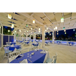 Das Hotel verfügt über insgesamt 250 Zimmer. Der Innenbereich umfasst Rezeption (24 h), Geschäfte sowie WiFi (ggf. gegen Gebühr, in öffentlichen Bereichen). Zu den Einrichtungen zählen zudem ein Hauptrestaurant (Buffet), ein à-la-carte Restaurant (gegen Gebühr) mit orientalischer Küche sowie mehrere Bars. Die Poollandschaft umfasst zwei Pools mit integriertem Kinderbecken, Kinderrutsche und Wasserrutsche. Am Strand sind Strandtücher, Sonnenschirme und Sonnenliegen kostenlos verfügbar.
