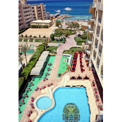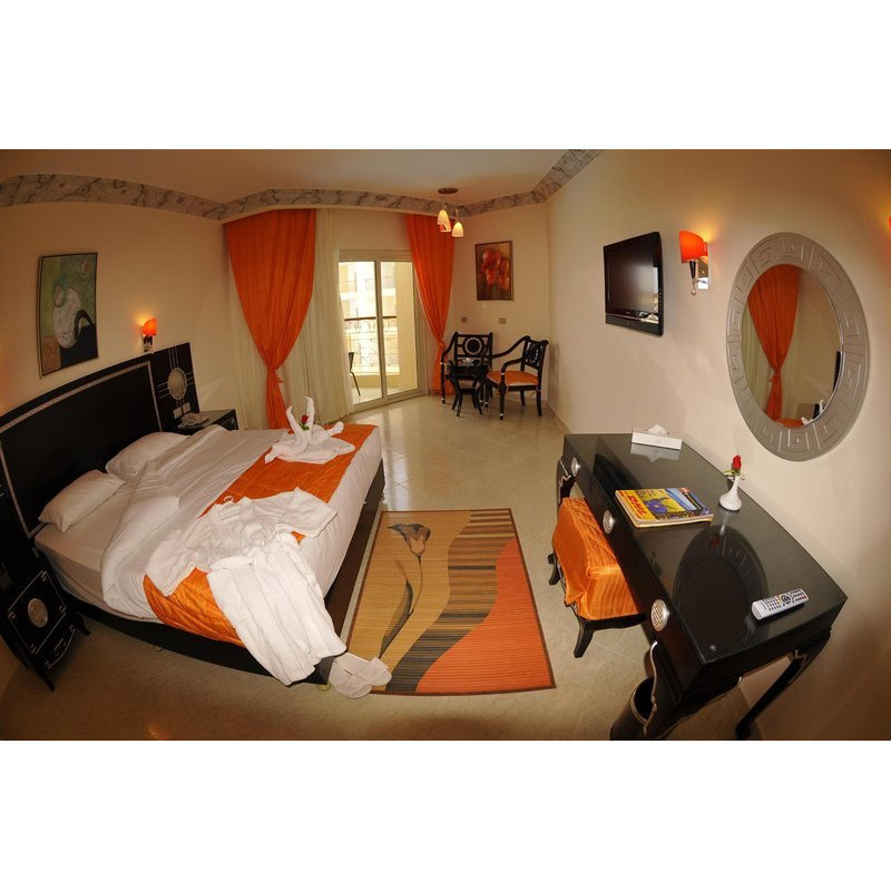Equipment: Anzahl Zimmer/Wohneinheiten insgesamt: 135; Empfangshalle, Rezeption, Sitzgruppen, Hotelsafe(s) (inklusive), WLAN (inklusive); Anzahl Restaurants insgesamt: 3; Restaurantdetails: Buffet, Cleopatra; Restaurantdetails: A-la-carte-Restaurant (inklusive), ISIS, Meeresfrüchtespezialitätenrestaurant; Restaurantdetails: Love Boat; Anzahl Bars: 3, Lobbybar, Loungebar, Strandbar; Cafés: 1; Souvenirshop, Juwelier, Geschäft/Geschäfte, Gepäckraum; Arztservice; Roomservice (gegen Gebühr); Wäsche-/Bügelservice; Außenanlage: Ausstattung: Sonnenterrasse, Whirlpool; Aquapark (inklusive), Anzahl Wasserrutschen: 4; Swimmingpool-Anzahl gesamt: 1; Liegen (nach Verfügbarkeit): am Swimmingpool (inklusive); am Strand (inklusive); Sonnenschirme (nach Verfügbarkeit): am Swimmingpool (inklusive); am Strand (inklusive); Auflagen (nach Verfügbarkeit): am Swimmingpool (inklusive); am Strand (inklusive); Kreditkarten: Mastercard, VISA; Check-in ab: 14:00 Uhr; Check-out bis: 12:00 Uhr; Schwesterhotel: Sphinx; Einrichtungen, die mitbenutzt werden dürfen: Fitnesscenter (inklusive), Sportangebot (inklusive), Wellnessbereich (gegen Gebühr)
