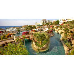 Das klimatisierte Hotel verfügt über 432 Zimmer verteilt auf 2 Etagen. Der Innenbereich umfasst Lobby, eine Rezeption (24 h), Safe, Lobbybar, Frisör, einen Lift, Minimarkt, Shop, Lesezimmer und 4 Bars sowie Internetecke und WiFi (in öffentlichen Bereichen). Zu den Einrichtungen zählen zudem mehrere Restaurants (mediterran, à-la-carte, international, italienisch und asiatisch) mit Klimaanlage und Terrasse. Im Hauptrestaurant können sich die Gäste am Buffet bedienen. Eine Snackbar bietet zusätzlich kleine Speisen. Die Poollandschaft umfasst mehrere beheizbare Pools sowie ein separates Kinderbecken und Wasserrutsche. Am Strand und am Pool stehen Sonnenliegen, Auflagen, Handtücher und Sonnenschirme bereit. An der Strandbar (saisonabhängig) können die Gäste Snacks und Erfrischungsgetränke genießen.