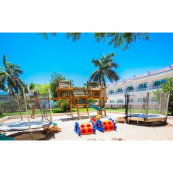 Ausstattung:Die parkähnlich gestaltete Hotelanlage mit 326 Zimmern besteht aus einem Hauptgebäude und mehreren 1- bis 3-stöckigen Nebengebäuden. Im Hauptgebäude befindet sich die großzügige Empfangshalle mit Rezeption (deutschsprachig) und 3 Buffetrestaurants, zudem gibt es einen Souvenirshop, Fitnessraum (gegen Gebühr), die Piano Bar und Lobby Bar. Am direkt angrenzenden Privatstrand finden Sie neben einer Wasserrutschbahn (leider vorübergehend wegen Renovierung geschlossen) auch ein Aquacenter, in welchem sowohl Tauchkurse (Tauchschule der Euro Divers) als auch andere sportliche Aktivitäten wie Windsurfen angeboten werden. Leider kann es bei den Aqua-Center-Aktivitäten aufgrund des Drittanbieters zu Änderungen kommen. Außerdem erwarten Sie hier verschiedene Pool- und Strand Bars.