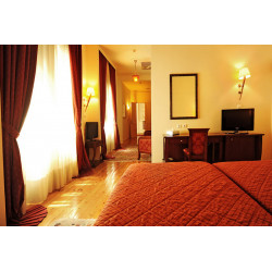 Mit King-Size-Bett, Babybett (kostenlos), Wasserkocher (ggf. geg. Gebühr), Minibar (ggf. geg. Gebühr), Internet (kostenlos), Safe (kostenlos) und Flatscreen-Sat-TV sowie individuell regulierbarer Klimaanlage. Badezimmer mit Dusche.