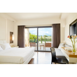 Die modern eingerichteten Zimmer sind ausgestattet mit King-Size-Bett, Laminat, Jacuzzi, Heizung (zentral gesteuert), Wasserkocher (kostenlos), Minibar (geg. Gebühr), Balkon oder Terrasse, Internet (kostenlos), Safe (kostenlos), Kapsel?Kaffeemaschine (kostenlos) und Flatscreen-Sat-TV sowie zentral gesteuerter Klimaanlage. Badezimmer mit Dusche.