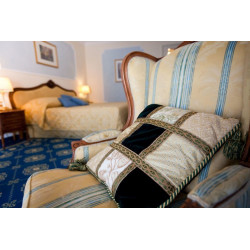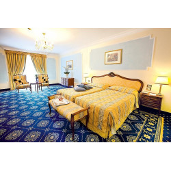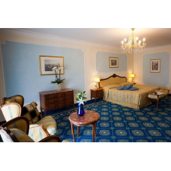 Die Deluxe Panorama Zimmer (ca. 53 qm) sind Luxus-Zimmer im Luis XV Stil eingerichtet, mit großzügigem Balkon und Blick auf den Park und aufs Schwimmbad, in einem der oberen Stockwerke des Hotels. Die Zimmer verfügen über ein elegantes Bad in Marmor mit Badewanne oder Dusche, Balkon oder Terrasse, Radio, Sat.-TV, Minibar, WLAN, Telefon, individuell regulierbare Klimaanlage, Safe und Föhn. Das Zimmer ist mit bequemen und großem Doppelbett oder zwei Einzelbetten verfügbar. Auf Wunsch kann ein Extrabett zugestellt werden.