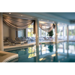 VENEZIA SPA mit Thermaldampfbad, Sauna, Kältekabine, Erlebnisduschen, Caldarium, Tepidarium. Aqua SPAce (ca. 600 qm) - Wellnesserlebnis im privaten Thermalbad. Thermalbad Etoile, Gegenstrom-Anlage und Whirlpool. Thermalinnenpool Lune" (ca. 36°C) verbunden mit Thermalaußenbad Soleil" mit Hydromassageparcours mit 18 Massagestationen. Kneipp-Tretbecken, Thermalschwitzgrotte, Aqua-Gym (Mo.-Fr.), Technogym Fitnesscenter, Arkè und Kinesis Center für ein gesundes Herz-Kreislaufsystem.