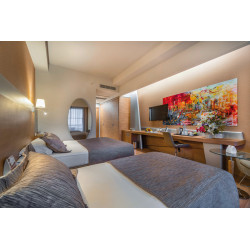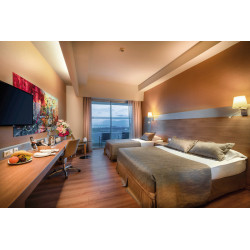 Zustellbett, Klimaanlage, Balkon, Bademantel, Badezimmer, Badewanne, getrennte Schlafzimmer (getrennt), Teppichboden, Kinderbett, Kosmetikartikel (ohne Gebühr), Doppelbett, Bügelset (auf Anfrage), Haartrockner, Zentralheizung, Internetzugang, Kingsize-Bett, Wohnzimmer, Minikühlschrank, Minibar, Nichtraucherzimmer (Anzahl: 401), Telefon, Radio, Safe, Meerblick, Vergrößerungsspiegel, Dusche, Hausschuhe, Raucherzimmer, Sofabett, Tee-/Kaffeemaschine, Terrasse, TV (Satellit), Für Rollstühle geeignet, Barrierefreies Badezimmer, WiFi (ohne Gebühr), Schreibtisch,