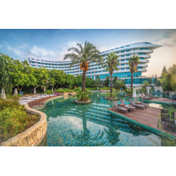 Klimaanlage, Theatersaal, Babysitter, Gepäckaufbewahrung, Bar, Mehrsprachiges Personal, Frühstückssaal, Business-Center, Café, Parkplatz, Geldautomat, Check-in/out, Kinderpool, Münzwäscherei, Konferenzraum, Liegestühle, Disco, Aufzug, Wechselstube, Pagen-Service, Garage, Garten, Friseur, Hallenbad, Internetzugang, Wäscherei (gegen Gebühr), Zeitungskiosk, Nachtclub, Außenpool, Sonnenschirme, Haustiere (erlaubt), Hotelarzt, Spielplatz, Spielzimmer, Pool (Anzahl: 6 / Süßwasser / beheizt), Poolbar, Rezeption (Öffnungszeiten: 24 hour), Empfangsbereich, Restaurant (Nichtraucher / Klimaanlage / Kinderhochstuhl / Raucher), Zimmerservice, Safe, Geschäfte, hoteleigener Shuttlebus (gegen Gebühr), Snackbar, Souvenir-Shop, Sonnenterrasse, Supermarkt, Terrasse, Tour-Desk, Badetuch, Transferservice (gegen Gebühr), TV-Raum, Garderobe, Wasserrutsche, WiFi (ohne Gebühr), Foyer,