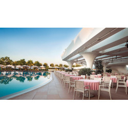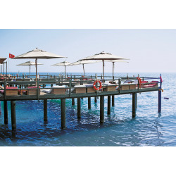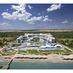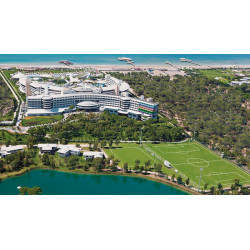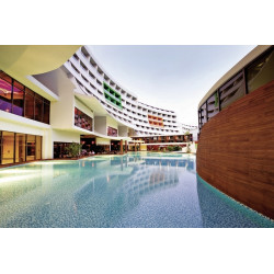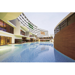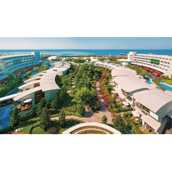 Moderne Gebäude mit attraktiven Baustilen geben der Deluxe-Anlage einen stylischen Look. Üppig gedeihen Pflanzen und Bäume auf dem 20 ha großen Areal. Der Duft der Pinien erfüllt die Luft herrlich! Premiumurlaub an der türkischen Riviera: Erleben Sie es selbst!