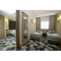Klimaanlage (zentral), Balkon, Badezimmer, Teppichboden, Kosmetikartikel (ohne Gebühr), Familienzimmer, Haartrockner, Zentralheizung (zentral), Minibar, Telefon (Direktwahl / gegen Gebühr), Safe (ohne Gebühr), Meerblick, Tee-/Kaffeemaschine, TV (Satellit), Spannung (220), WiFi (ohne Gebühr), Schreibtisch,