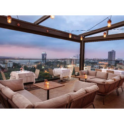 Sport & Fitness: Auf der Terrasse können die Urlauber schönes Wetter genießen. Abwechslung bieten verschiedene Angebote, darunter ein Fitnessstudio, ein Spa, eine Sauna, ein Hammam und Massage-Anwendungen.