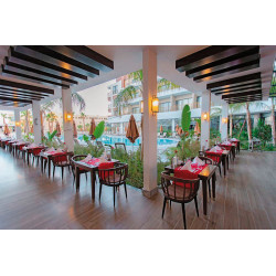 - 41-45 m², dvojposte?ová izba, výh?ad na bazén, sprcha, WC, sui? vlasov, klimatizácia, minibar, nápl? pravidelne, nealkoholické nápoje, pivo, voda, bezpe?nostná schránka, TV (SAT), telefón, varná kanvica, káva/?aj, balkón