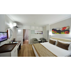 Klimaanlage (individuell), Balkon, Badezimmer, getrennte Schlafzimmer (getrennt), Teppichboden, Kinderbett, Doppelbett, Familienzimmer, Kühlschrank, Haartrockner, Zentralheizung (individuell), Internetzugang, Minikühlschrank, Minibar, Telefon (Direktwahl), Radio, Safe, Dusche, Terrasse, TV, WiFi (gegen Gebühr),