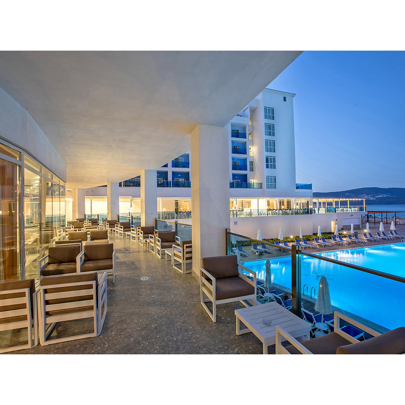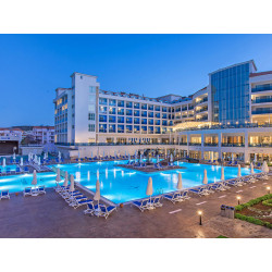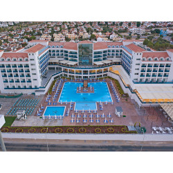 Ausstattung: Im Sommer 20 neu eröffnetes Hotel der Luxusklasse. 3 Swimmingpools (davon 1 Aquapark mit 8 Rutschen), Liegen, Schirme und Badetücher am Pool und am Strand. Strand-/ Snackbar. Empfangshalle mit Rezeption, Hauptrestaurant, 3 À-la-carte-Restaurants (türkisch, Meeresfrüchte, italienisch), Bars. WLAN in der gesamten Anlage inklusive, Patisserie. Landeskategorie: 5 Sterne, 347 Zimmer.